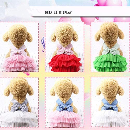 GFFGA - Vestito estivo per cani, in tulle di pizzo, per cani di piccola taglia, per feste di compleanno, matrimonio, con fiocco, a righe, rosa, XS
