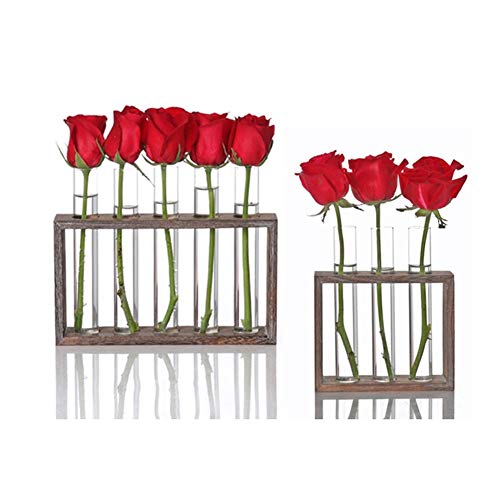 Gfpql WYanHua-Provetta Vaso di Vetro Provetta,con Il Basamento di Legno Rack da Tavolo,Planter Fiore Moderna Vasi Tavolo terrario Multiuso (Color: Yellow)