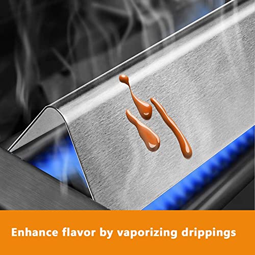✔ 【Funzione】 Questi deflettori di calore risiedono sopra i bruciatori, impedendo l'accumulo di liquidi e convertendo le gocce di cibo in vapori salati che avvolgono il focolare. Qualsiasi gocciolamento non vaporizzato segue la pendenza e viene infilato lontano dai bruciatori, in modo da proteggere i bruciatori