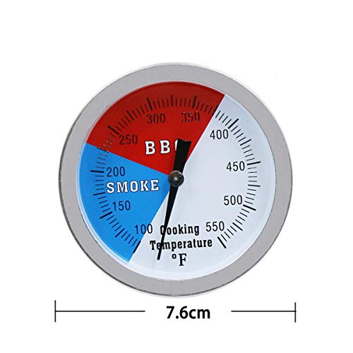 GFTIME Indicatore di temperatura da 7,6cm per griglie per fumatori, indicatore di temperatura per griglia a carbone per griglie a gas, sostituzione del termometro della griglia