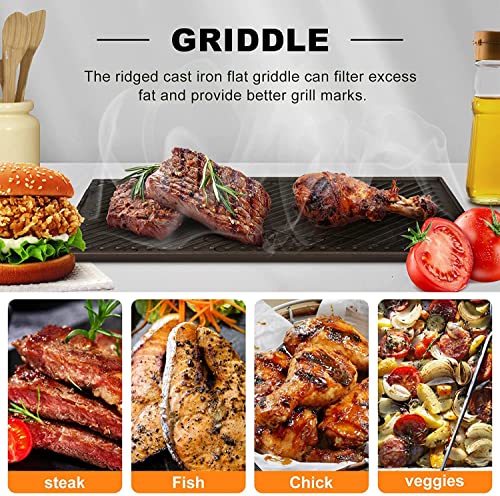 GFTIME Piastre in ghisa, 41,8 x 24 cm, per forno, fornello e grill, griglia per cottura e grill 2 in 1 reversibili