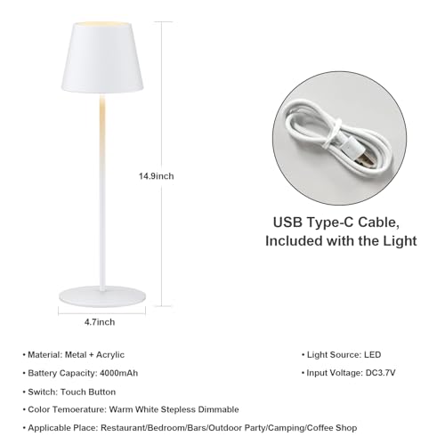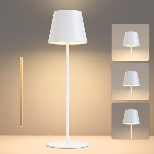 GGII Lampada da Tavolo Senza Fili, LED Ricaricabile, Dimmerabile Touch Metallo, IP54 Portatile per Interni e Esterni, Giardino, Balcone, Bianco