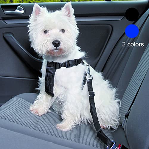 GGISUI 2 Pezzi Cintura Sicurezza Cani, Regolabile Cintura Auto per Cani Nylon Elasticità Cintura Cane Auto con Moschettone per Tutte Cani e Gatti Viaggio Sicurezza(Nero e Blu)