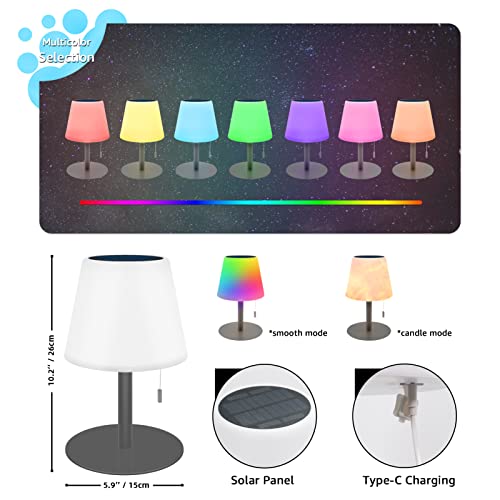 GGNOO Lampada da tavolo solare per esterni 8 colori senza fili 2 in 1 carica solare e ricarica con telecomando, lampada da tavolo solare per esterni, per tavolo, giardino camera campeggio