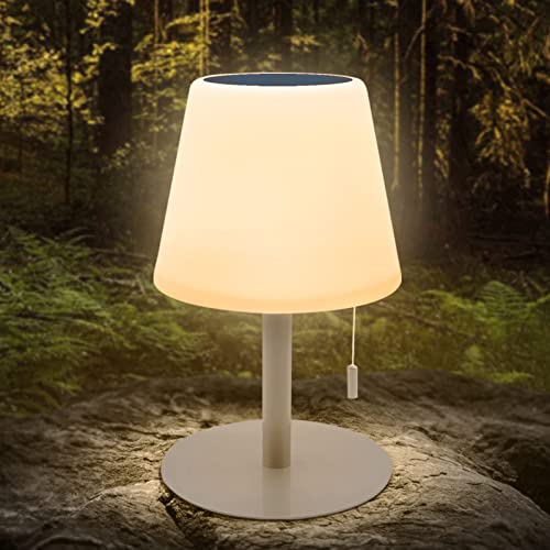 Alta qualità: la lampada da tavolo solare per esterni è realizzata in metallo grigio inossidabile, il peso impedisce che il paralume sia realizzato in plastica PE di alta qualità. Più stabile e sicuro rispetto ad altre lampade sul mercato. Garantisce stabilità e sicurezza della lampada da tavolo solare e impedisce che cada e si usuri. Lunga durata.
