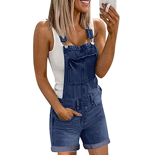 Ghemdilmn Salopette da donna in denim, Blu scuro, M