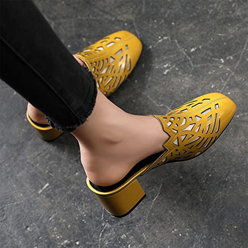 Ghemdilmn Sandali da donna con zeppa, scarpe con tacco aperto, sandali eleganti retrò e traspiranti, per il tempo libero, estivi da spiaggia, giallo., 38