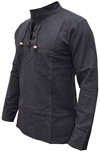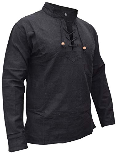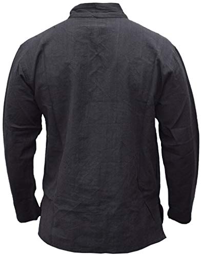 Gheri Camicia da uomo con scollo a V in cotone di canapa, Plain Black, 3XL