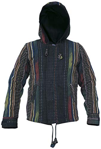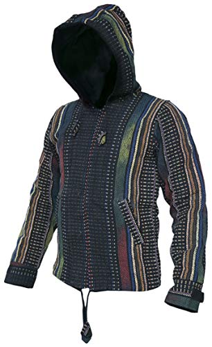 Gheri Hippie - Felpa con cappuccio da uomo, in cotone naturale, lavorato a maglia, stile nepalese multicolore M