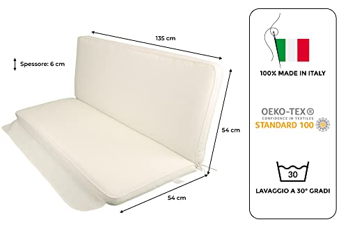 GHIOCUSCINI CUSCINO DONDOLO 3 POSTI cm 135 sfoderabile con tettuccio Mis. larghezza cm135 X profondità 54, SP.6cm Schienale 54 cm Tessuto COT/Poly Incluso Tettuccio (Ecru)