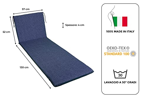 GHIOCUSCINI, Cuscino per Lettino Mare Spiaggia, per Esterni, da Giardino Lunghezza cm 52+130 Larghezza 57 h. 4 cm SFODERABILE COT/POLY (Blu)
