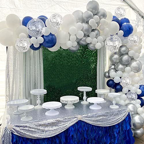 Kit ghirlanda arco palloncini blu navy, palloncini blu navy palloncini bianchi palloncini argento metallizzato tovaglia blu navy palloncini coriandoli argento per compleanno feste decorazioni