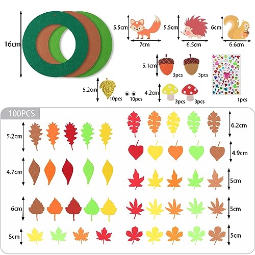 ️【CONFEZIOEN】: 3 set di ghirlanda autunnale, include 3*ghirlande feltro+3*animali+100*adesivi foglia+10*foglia d'oro+6*pigne+6 funghi piccoli+3*nastrino+10*occhi mobili adesivi+1 foglio adesivi strass.