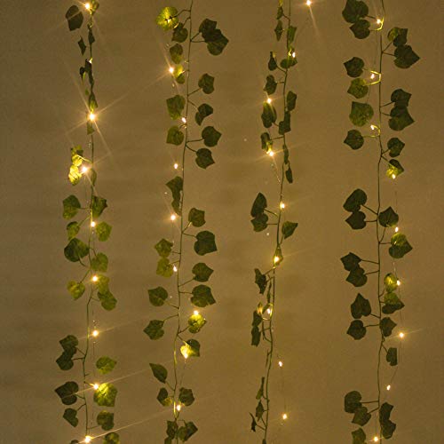 Ghirlanda di edera artificiale con 80 LED stringa di luce, da appendere a vite, con luci a LED, per casa, cucina, giardino, ufficio, matrimonio, decorazione da parete