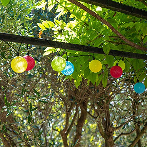 ➤【☀️ 32 PALLINE ULTRA RESISTENTE】 - Cotone fine intrecciato - Plastica trasparente resistente - Uso esterno - 6 cm - 4 colori (Fushi rosso, verde, blu, giallo) - Decorazione per giardino, terrazza, balcone, veranda, patio, van, campeggio, piscina - Offre una vera atmosfera accogliente e calda per una decorazione spirituale di successo