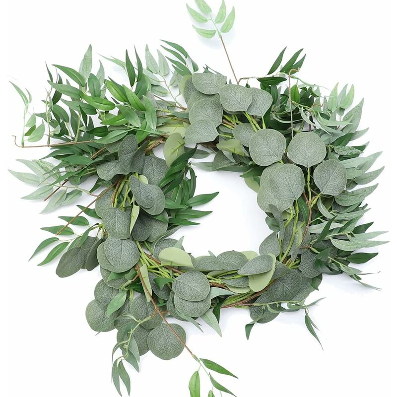 Colore: come mostrato Dimensioni: 30 * 20 * 5 Peso: 180 grammi Ghirlanda di eucalipto grigio-verde fatta a mano. Ideale per la decorazione di matrimoniLe foglie e i fiori sono realizzati in tessuto di alta qualità e gli steli sono realizzati in plastica e filo metallico, che è molto realistico e di facile manutenzione. Le ghirlande di eucalipto sono ideali per qualsiasi matrimonio o arredamento per la casa come archi, sedie, fondali, corridoi, fondali, artigianato e altro.Contenuto: 1 ghirlanda di eucalipto.