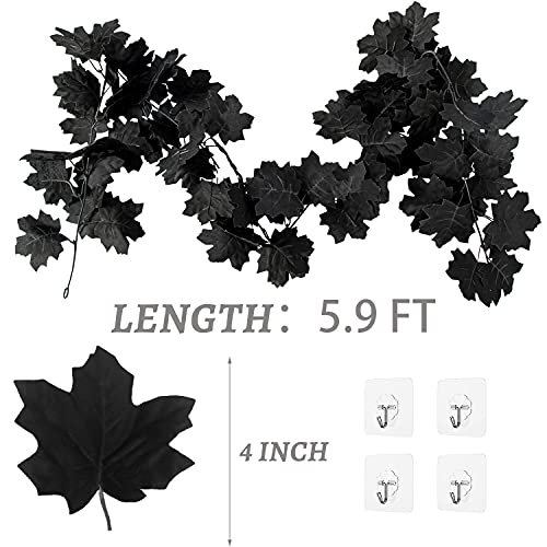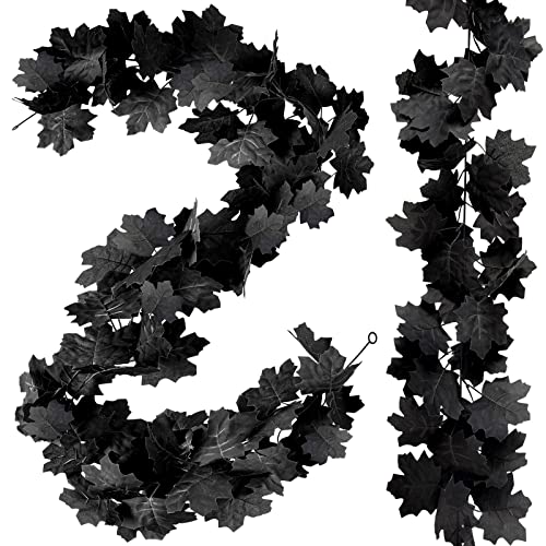 Ghirlanda di foglie d'acero nero, 2 pezzi artificiali per Halloween, foglie autunnali, ghirlande floreali autunnali per decorazioni del Ringraziamento per la casa e le feste di matrimonio (30,6 m)