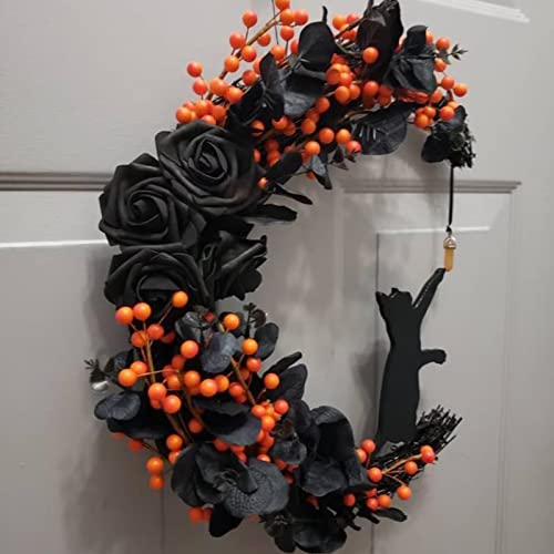 Ghirlanda di Gatto Luna di Halloween con Rosa, Ghirlanda Gotica Ghirlanda di Halloween Nera per Ghirlande della Porta D'ingresso per Decorazioni per la Casa per Feste da Parete per Finestre(#1)