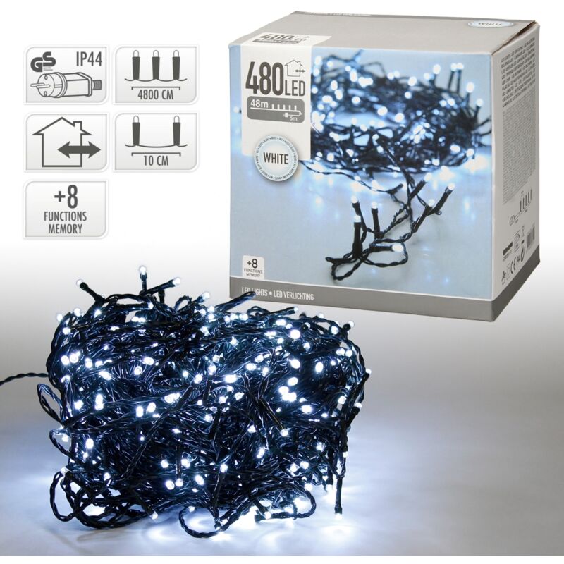 Ghirlanda multifunzionale 480 led bianco freddo 220v 53m ip44 cavo verde 10cm tra le lampadine led 5mm programmatore 8 funzioni con adattatore memoria ce adattatore