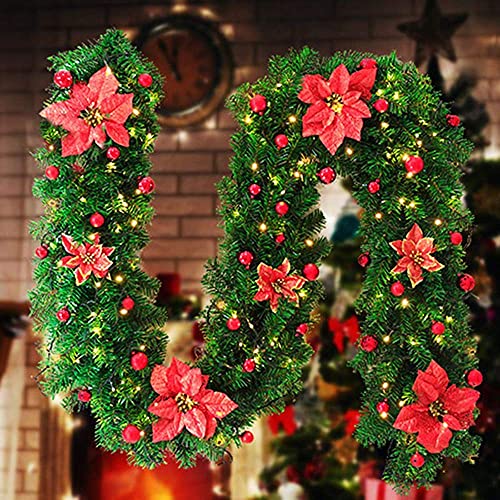Ghirlanda di Natale, ghirlanda di albero artificiale, fiori decorativi, vigna, 270 cm, in PVC, rattan, ornamenti natalizi con LED luminosi e fiori e palline per Natale, giardino scale caminetto porta (rosso)