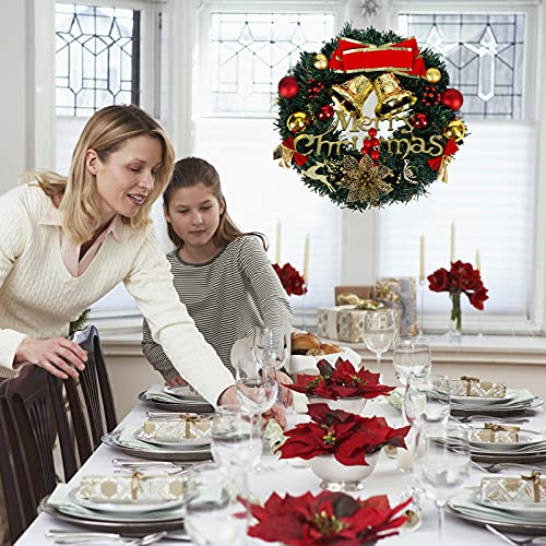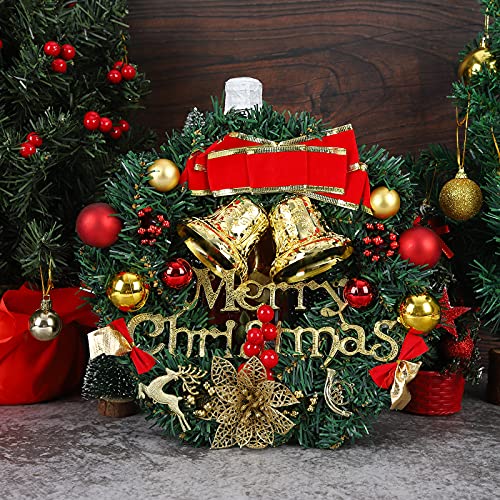 Ghirlanda di Natale, 30 cm Ghirlanda di Natale Artificiale Ghirlanda da Appendere alla Porta d'ingresso Ghirlanda Artificiale di Bacche di Agrifoglio con Fiocco Jingle Ghirlanda di Natale Ghirlanda