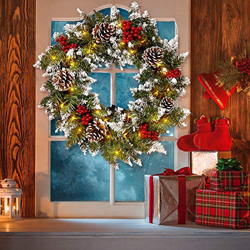 Ghirlanda di Natale Ghirlanda di pino artificiale con ghirlanda per porta d'ingresso per decorazioni natalizie natalizie con 50 luci LED e fiocchi di neve Setole d'argento