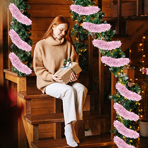 10M Ghirlanda di Orpelli Natalizi Ghirlanda Albero di Natale, Festoni Natalizi, Festoni Albero di Natale, Ghirlanda Orpelli Natalizia per Albero Natalizie Decorazioni Casa Interno (Rosa chiaro)