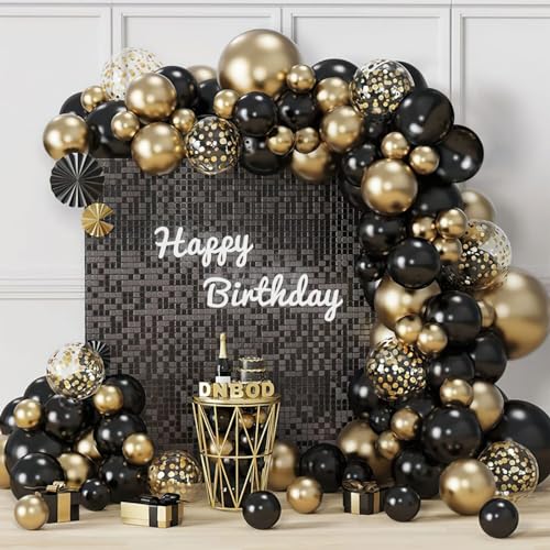 ❤【Arco per palloni in oro nero】 il kit per palloncini neri e dorati contiene 93 palloncini neri opachi, 30*12"Palloncino nero,30*12" Palloncino oro, 20*12"Palloncino bianco,10*12" Palloncino oro con lustrini,1*1 catena di palloncini,1*1 punto focale,1*Nastro color argento,Un rotolo di 10m catena palloncino e colla a punti forniscono un perfetto pacchetto di palloncini fai da te per qualsiasi decorazione per feste.