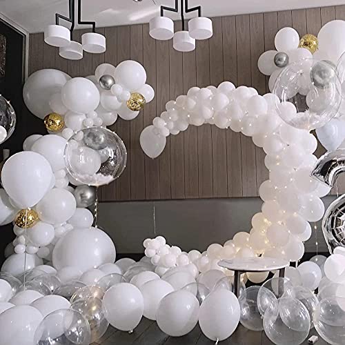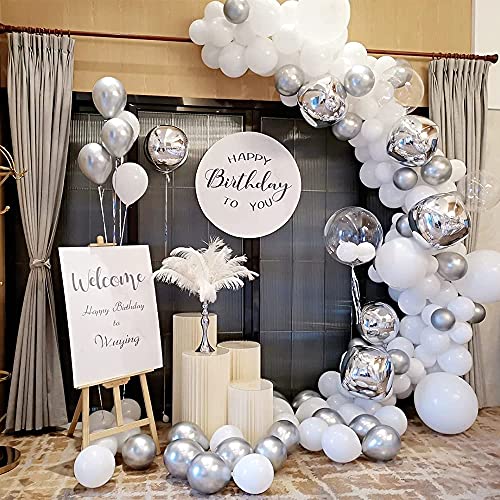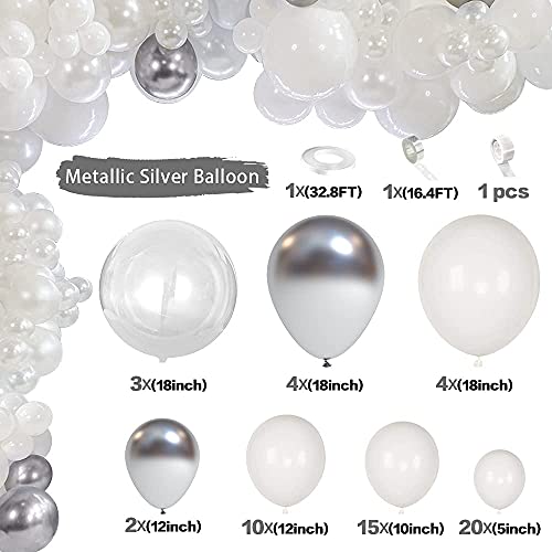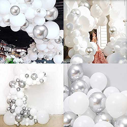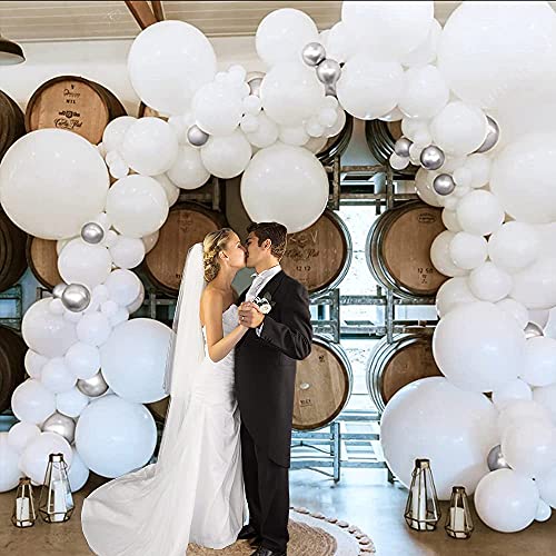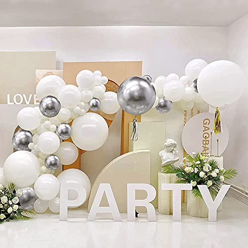 Kit Ghirlanda Palloncini Bianchi e Argento, Palloncini Compleanno Bianchi e Argento per Addobbi Compleanno, Decorazioni Matrimonio, Baby Shower, Battesimo Bambino (Bianco)