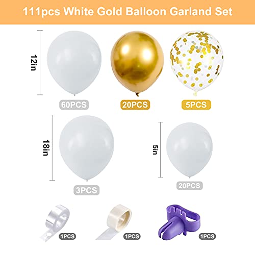 Ghirlanda di palloncini in oro bianco, 110 pezzi, decorazioni per feste con coriandoli dorati, palloncini e nodi, palloncini di compleanno per matrimoni, battesimi, ragazze