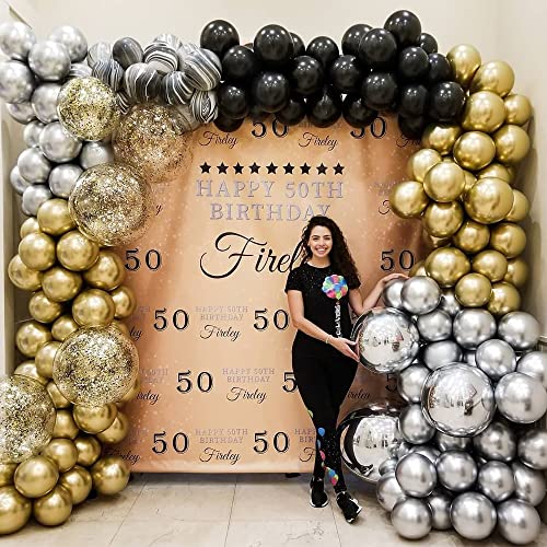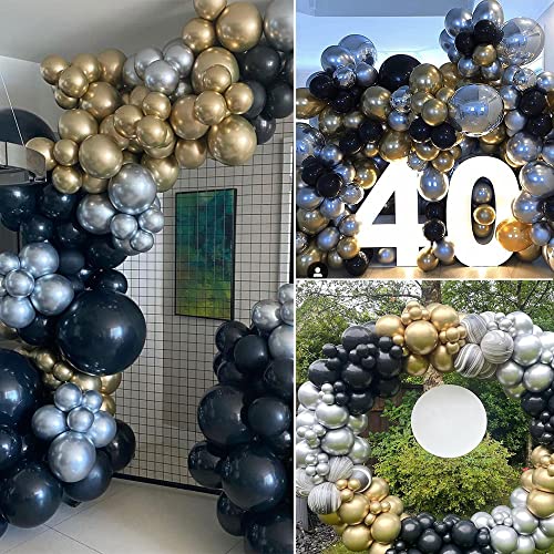 Ghirlanda Palloncini Oro Nero, Kit Arco Palloncino Oro Nero Argento per Uomini Donne Festa Compleanno Matrimonio Halloween, Gatsby, Capodanno, Decorazioni per Feste Pensionamento o Laure