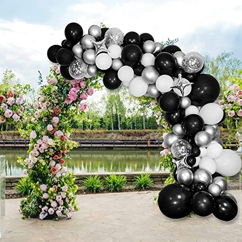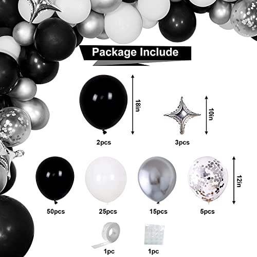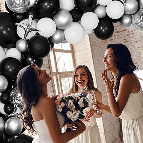 Ghirlanda di palloncini nero argento, GRESATEK kit arco di palloncini, palloncini bianchi argento coriandoli kit di palloncini metallici per decorazioni di compleanno nozze Baby Shower Party Supplies