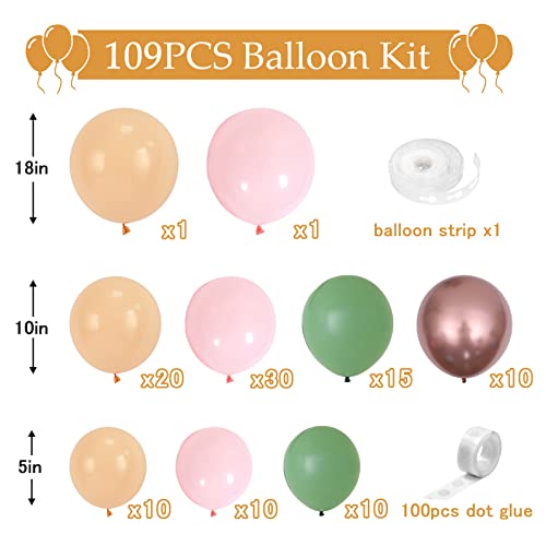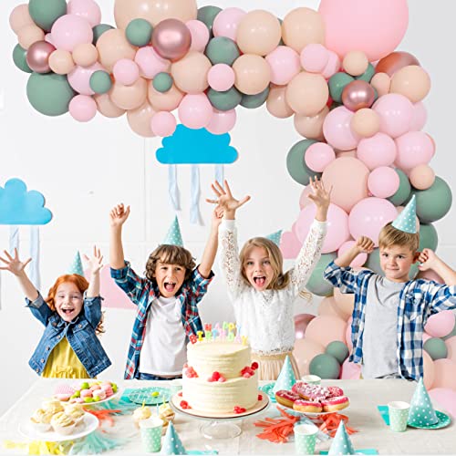 Ghirlanda di palloncini, 107 pezzi, palloncini per compleanno con palloncini rosa verde e beige, in lattice, rosa, verde, set per compleanni, feste, battesimi, lauree, matrimoni, decorazioni