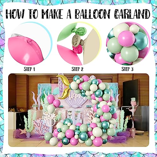 Kit ghirlanda di palloncini a sirena, kit ad arco con coda di sirena, palloncini in lattice metallizzato, verde, rosa e bianco, palloncini per feste di compleanno a tema sirena oceano, decorazioni per