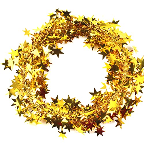 5 ghirlande decorative natalizie, 7,5 m, per pezzo, piccole stelle, filo di Natale con stelle, decorazione per albero di Natale, casa, matrimoni, feste, festival, oro