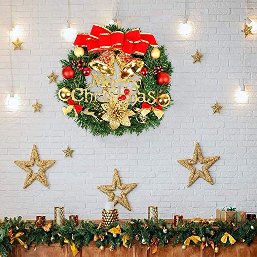 Ghirlande di Natale ornamento esterno interno fiore artificiale Merry Christmas Decorazione da appendere alla porta anteriore della parete con campane palline