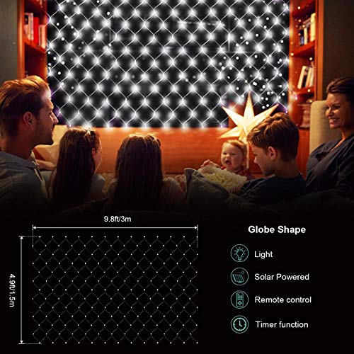 Ghirlande Neta Luce di rete ad energia solare 3 m x 1,5 m, 8 modalità di luci di Natale, tenda a rete impermeabile con telecomando per interni esterni (bianco)