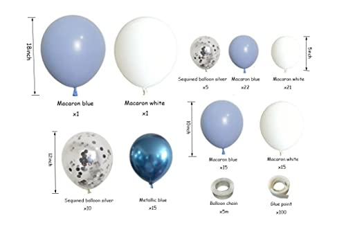 Kit di Ghirlande di Palloncini ad Arco Palloncini Blu Bianchi Palloncini di Coriandoli Oro Argento Palloncini Blu Metallizzati Per la Festa di Compleanno di Compleanno di Baby Shower