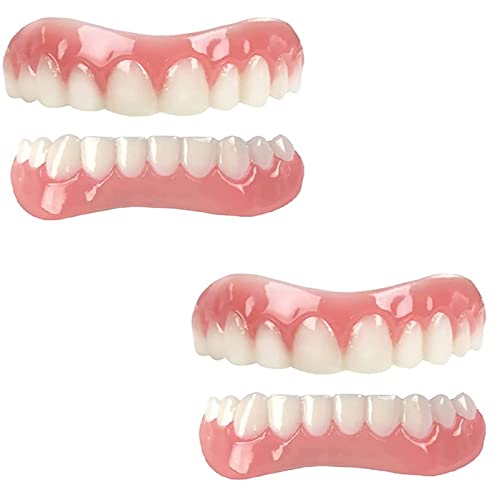 GHJGDAOM Faccette Istantanee Denti Finti Confortevole Naturale Perfetto Sorridente Dentiera Uomini e Donne Cosmetici Temporanei in Alto e in Basso Silicone Denti Falsi,A,2 Pairs