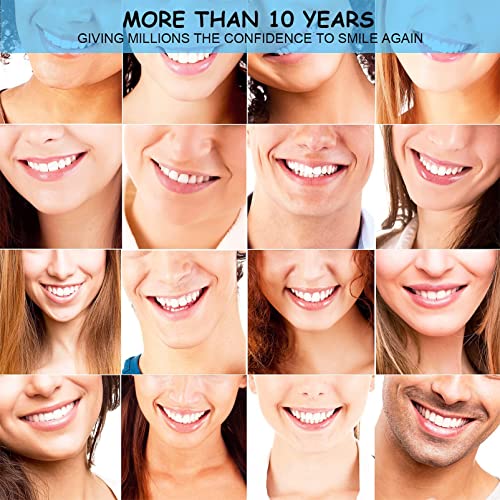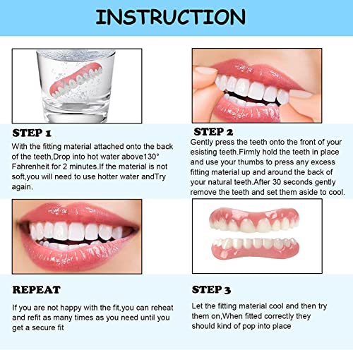 Materiale: i nostri denti sono dotati di materiale di fissaggio in gel di silice, in modo che rimangano in posizione. Coprirà i denti mancanti, rotti, piegati o macchiati, una semplice operazione può avere denti perfetti e il materiale è di qualità e innocuo, dandoti una piacevole sensazione di usura.