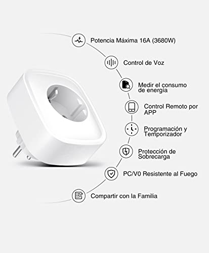 Controllo vocale: presa intelligente wifi condivisibile con Alexa, google assistant. Puoi controllare i tuoi elettrodomestici tramite comandi vocali, come "Alexa, spegnere l'aria condizionata in due ore. Ci impegniamo a rendere la tua casa più intelligente e conveniente. (solo 2,4 Hz Wi-Fi)