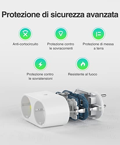 【Programmatore e Timer】Con la presa Smart Wlan puoi impostare come TV, illuminazione, umidificatore, aria condizionata e bollitore per accendere e spegnere in determinati orari. E il timer per il conto alla rovescia disattiva automaticamente il timer di casa come impostazioni.Presa Certificate Alexa, Spina commutabile che impedisce la ricarica e il surriscaldamento.