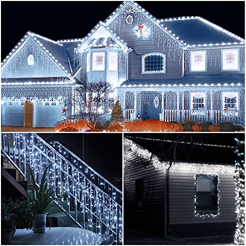 【Catena luminosa per ghiaccioli 10M400LED】Diversa dalle altre luci natale esterno cascata, la nostra luci natale esterno cascata è un gruppo di quattro, con 4, 6, 7 e 8 LED. Le luci sono più dense rispetto a gruppi di tre e l'effetto visivo è migliore. Ci sono 64 fili in totale, la stringa di luci è di 10 m, il cavo di alimentazione è di 5 m e la lunghezza totale delle luci natalizie da esterno è di 15 m. Il cavo di alimentazione è abbastanza lungo per poter utilizzare la luci natale