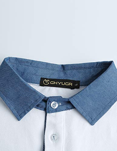 GHYUGR Polo Uomo Manica Corta Maglietta Denim Collare Casuale Poloshirt Camicia Golf T-Shirt,Bianco,L
