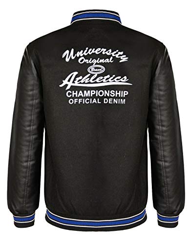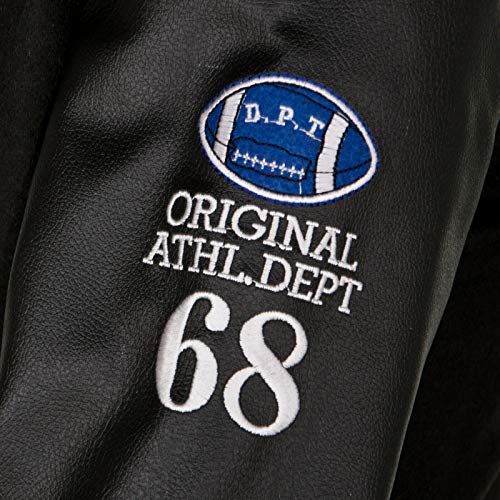 Giacca Bomber da Uomo in Lana Cotone Nero da Baseball in Pelle PU Bianca con Maniche Varsity Letterman XL
