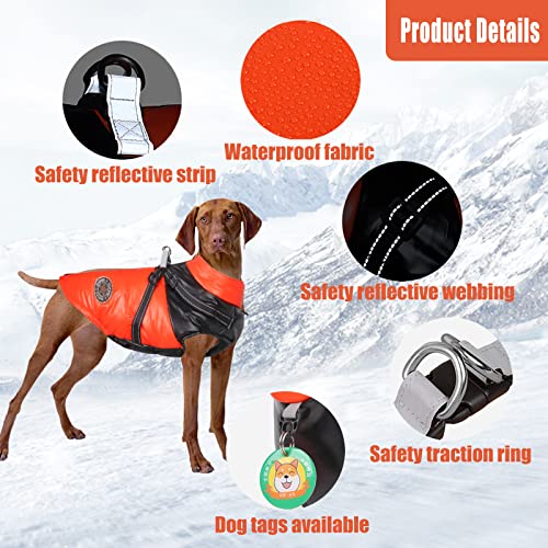 Giacca per cani per l'inverno,Cappotto impermeabile per cani, Cucciolo caldo giacca abbigliamento gilet,Giacca antivento per cani in caso di freddo per cani di piccola e media taglia (XL, Orange)