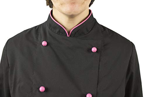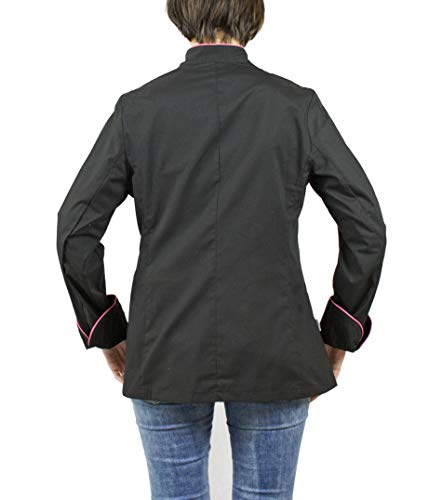 Giacca Cuoco Donna Ricamata con Nome Personalizzabile Online Modello Lady Chef Nero Fuxia Isacco (L)