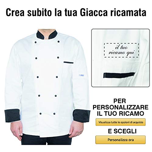 Giacca Cuoco Isacco Bicolore Ricamata con Nome Personalizzabile Online Modello Royal Chef Bianco Nero Unisex (XXL)