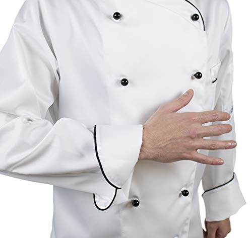 Giacca Cuoco Ricamata Isacco con Nome Personalizzabile Online Modello Pechino Bianco con Inserti Neri (XXL)