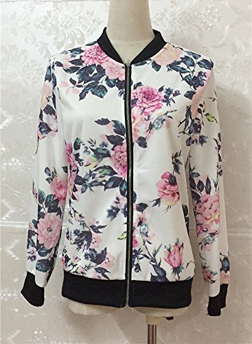 Giacca Donna Eleganti Autunno Blazer Manica Lunga Stampato Floreale Bomber Giubbotto di Baseball Cappotto Corto Trench Cerniera Taglie Forti Bolero Top Giubbino Moda Unique